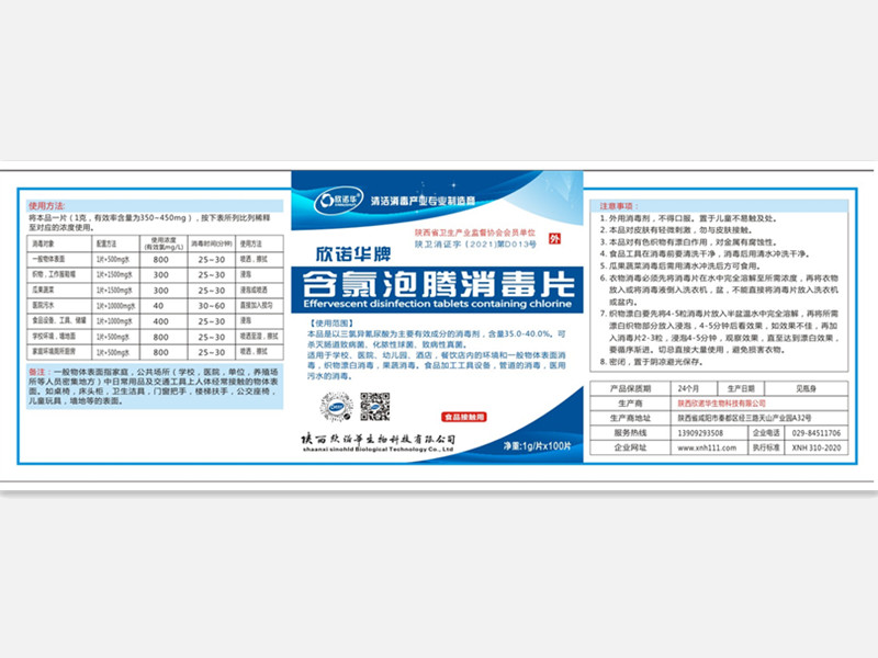 產(chǎn)品名稱(chēng): 欣諾華牌含氯泡騰消毒片 商標(biāo):