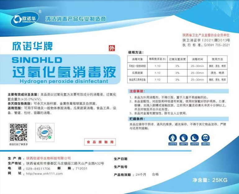 產品名稱:7.5%過氧化氫消毒液 注冊商標:欣諾華牌