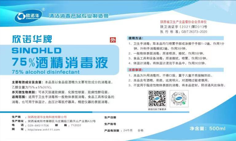 產(chǎn)品名稱(chēng): 欣諾華牌75%酒精消毒液 商標(biāo):欣諾華