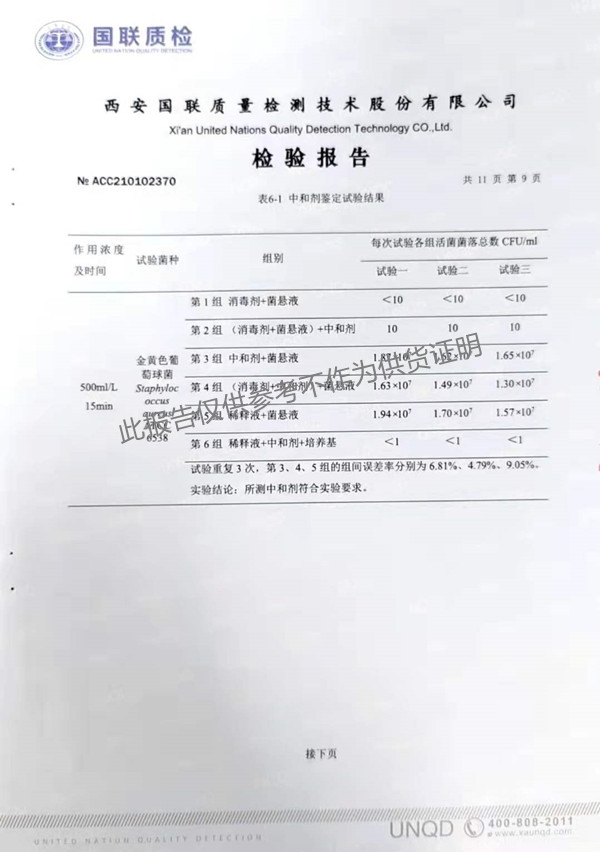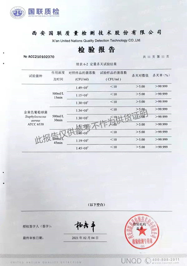 三橋牌過氧乙酸消毒劑(SQ-706型)檢測(cè)報(bào)告