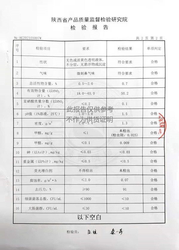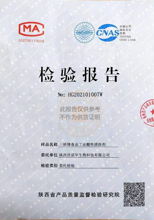 三橋牌食品工業(yè)酸性清洗劑(XNHSQ-2型)檢測報告